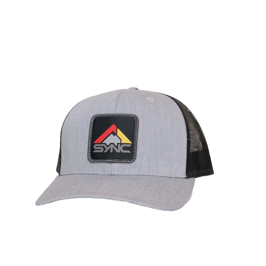A Cotton Twill based Trucker Hat with a Pre Curved Visor and Classic Snapback, featuring a SYNC woven patch.